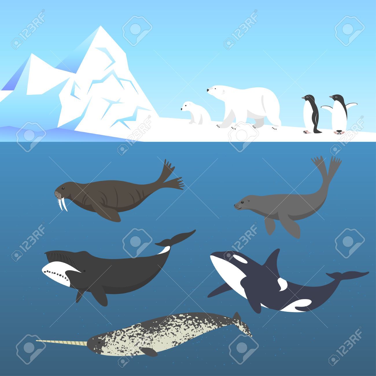 Vector Set Of Animals Living In A Cold Climate Polar Bear